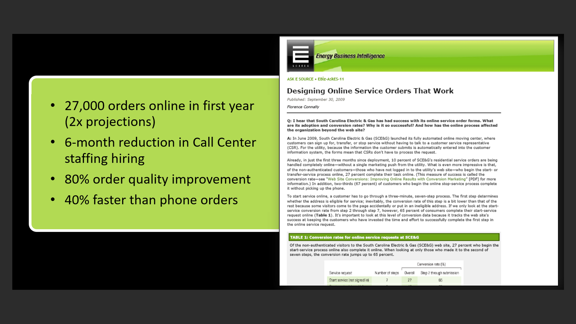 | 2009 | Best Practices recognition for Online Service Orders (E Source) |